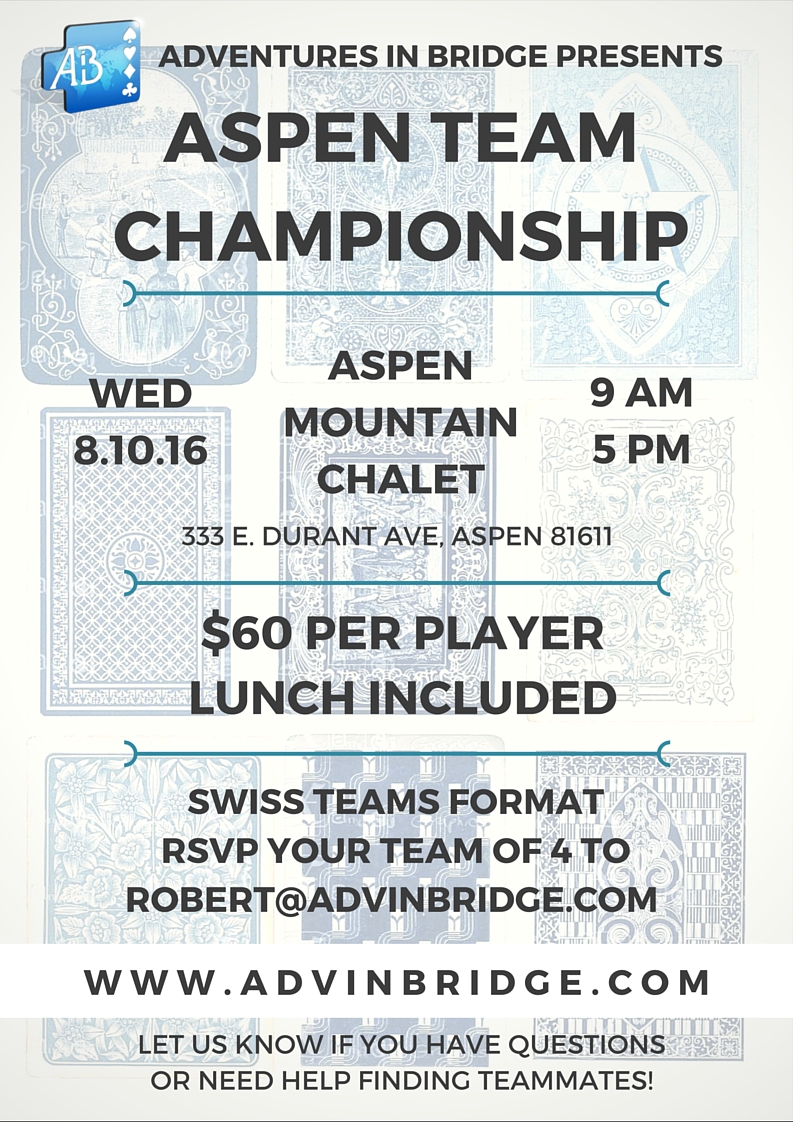 Thank you to everyone who came out and played this year! We're glad the Aspen Mountain Chalet was such a great venue and we'll see what we can do about using it again in the future.
